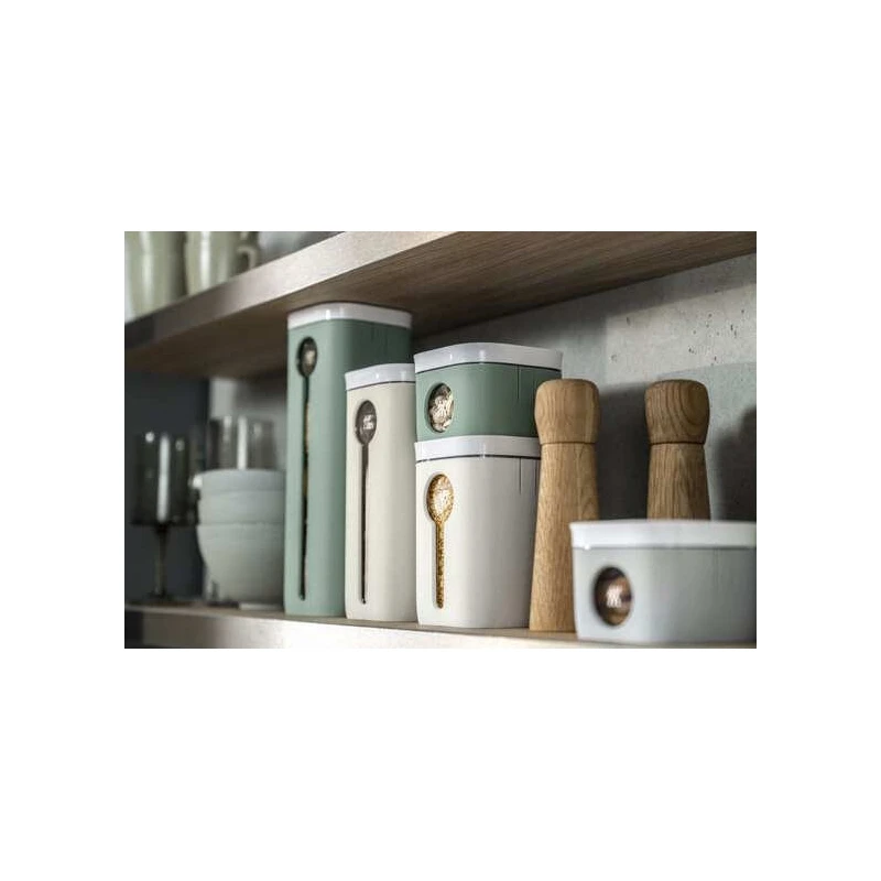 Un Pratico Indicatore del Livello di Riempimento: La cover grigia è realizzata in plastica di alta qualità, senza BPA, garantendo la massima sicurezza alimentare. Inoltre, la finestra trasparente con la linea del livello di riempimento ti permette di tenere sempre d’occhio quanto è pieno il contenitore, senza dover rimuovere il coperchio. È un piccolo dettaglio che semplifica la tua vita in cucina.